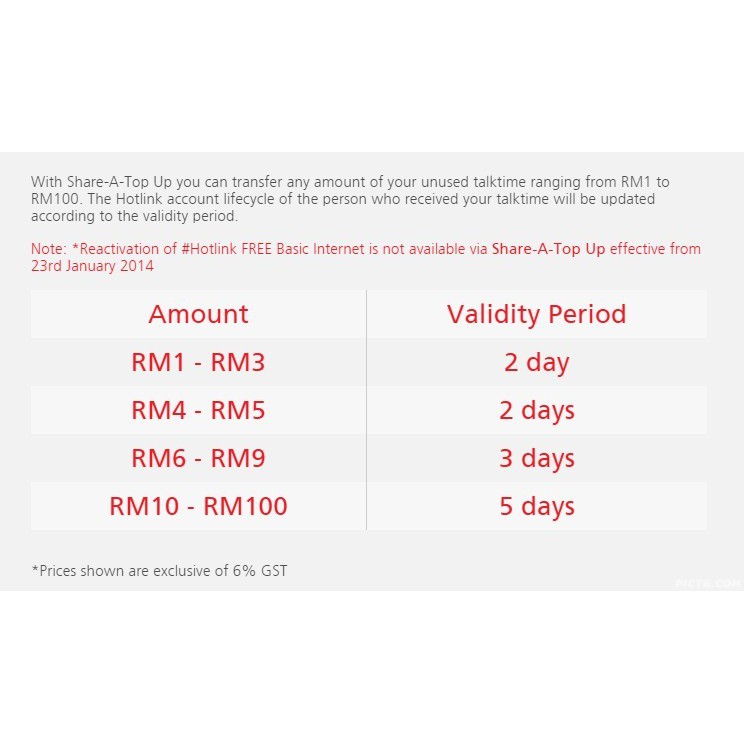 Hotlink Share A Top Up Rm100 Validity Period 5 Days Shopee Malaysia