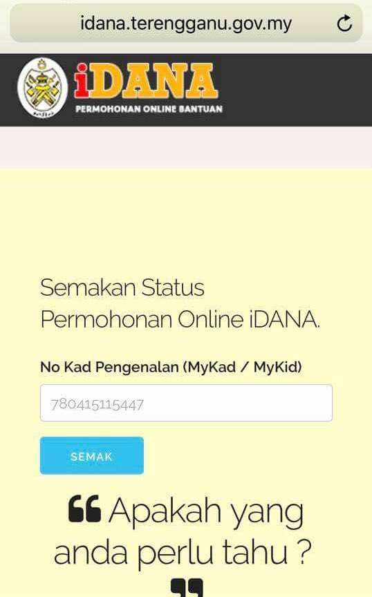 Permohonan Online Dana Terengganu Idanattb 2020 Semakan My