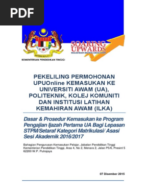 Pekeliling Permohonan Upuonline Upu Mohe Gov My Web Pekeliling Dasar Prosedur Kemasukan Pengajian Asasi Diploma Ua Dan Politeknik Premier Bagi Lepasan Spm Setaraf Sesi Akademik