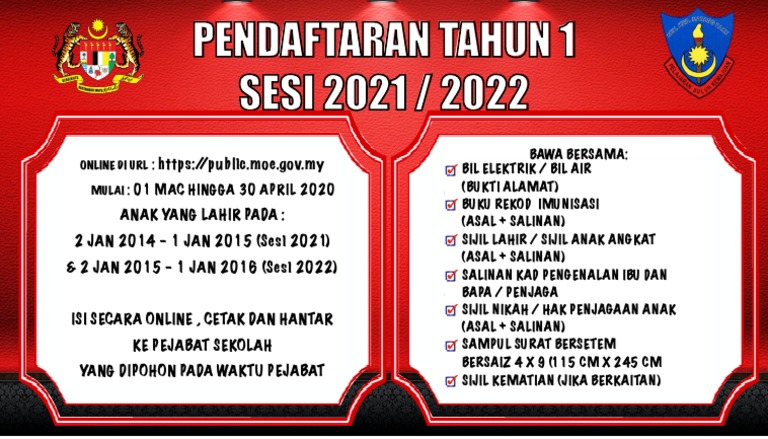 Pendaftaran Tahun 1 2021 2022 Untuk Anak Yang Lahir 2014 Hingga 1 Januari 2016 Pa Ma