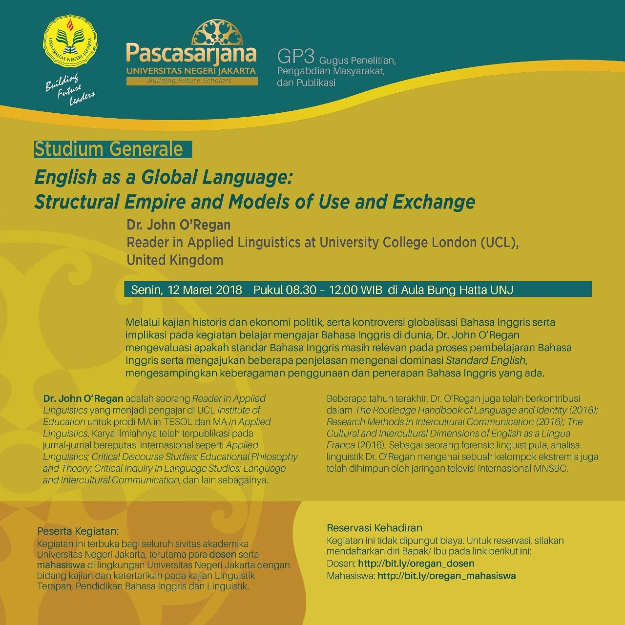 Univ Negeri Jakarta On Twitter Yuk Hadiri Seminar Tentang English As A Global Language Structural Empire And Models Of Use And Exchange Dan A Studium Generale By Dr John O Regan Reader In