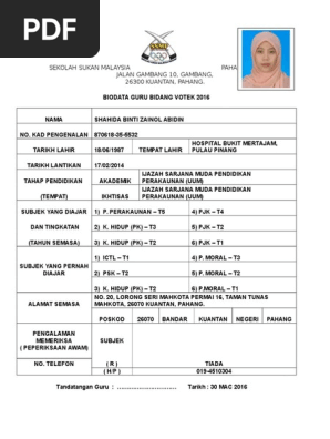 Biodata Guru Bidang Votek Ssmp Doc