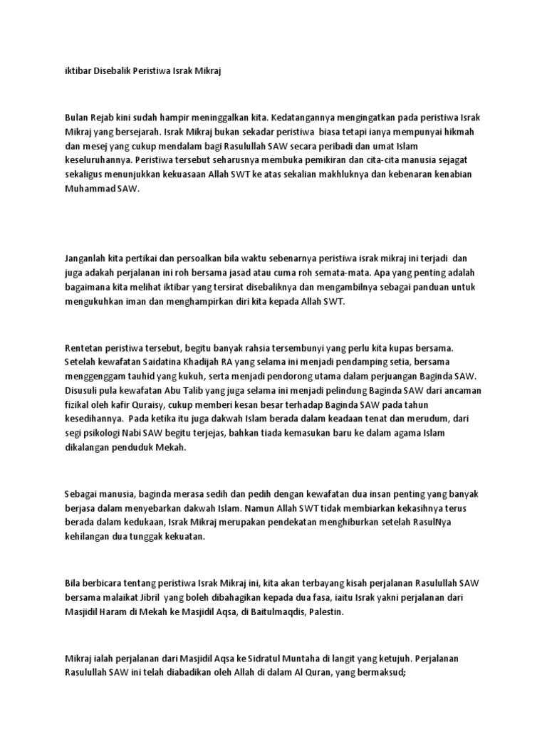 Iktibar Disebalik Peristiwa Israk Mikraj