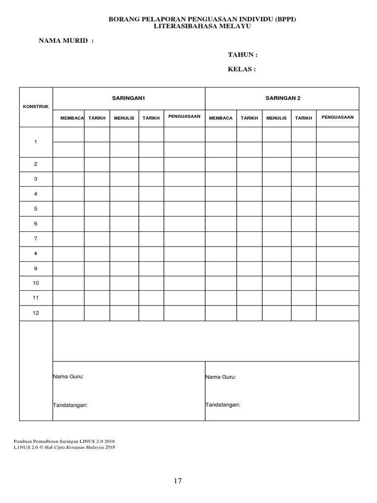 Borang Pelaporan Penguasaan Individu Linus 2018