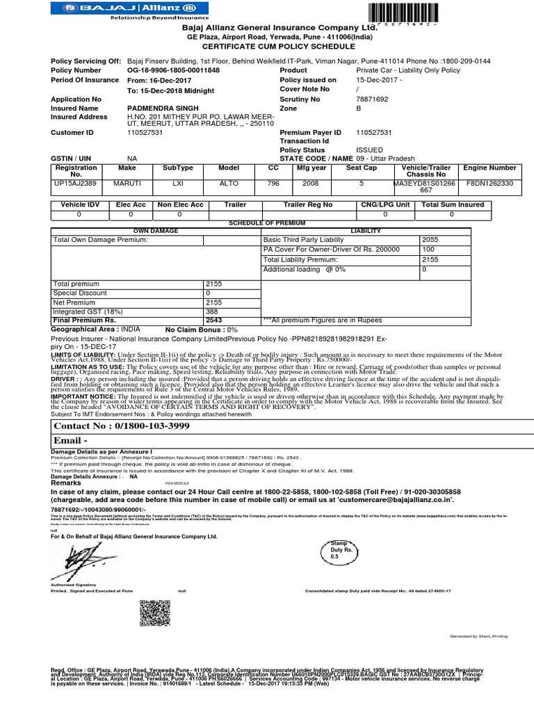 Car Insurance Policy Bajaj Allianz Car Insurance Policy