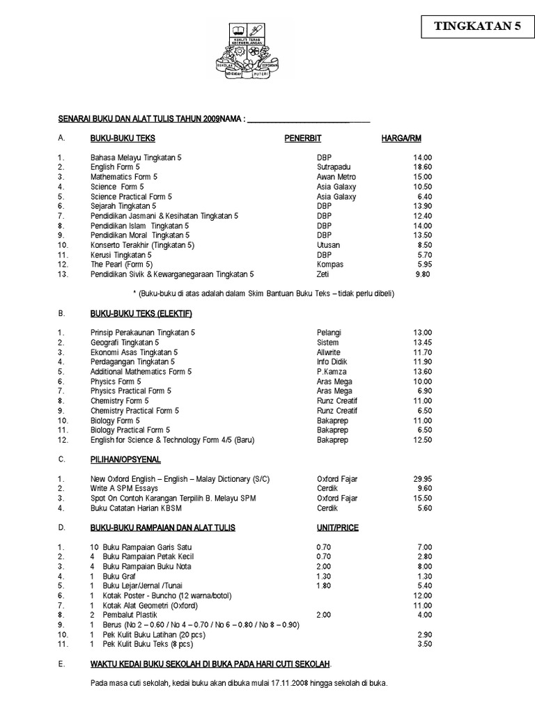 Isi Kandungan Buku Teks Sejarah Tingkatan 5