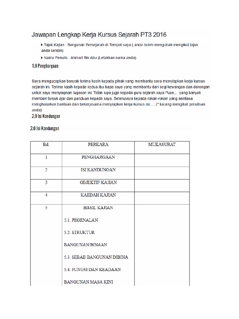 Isi Kandungan Kerja Kursus Sejarah Pt3