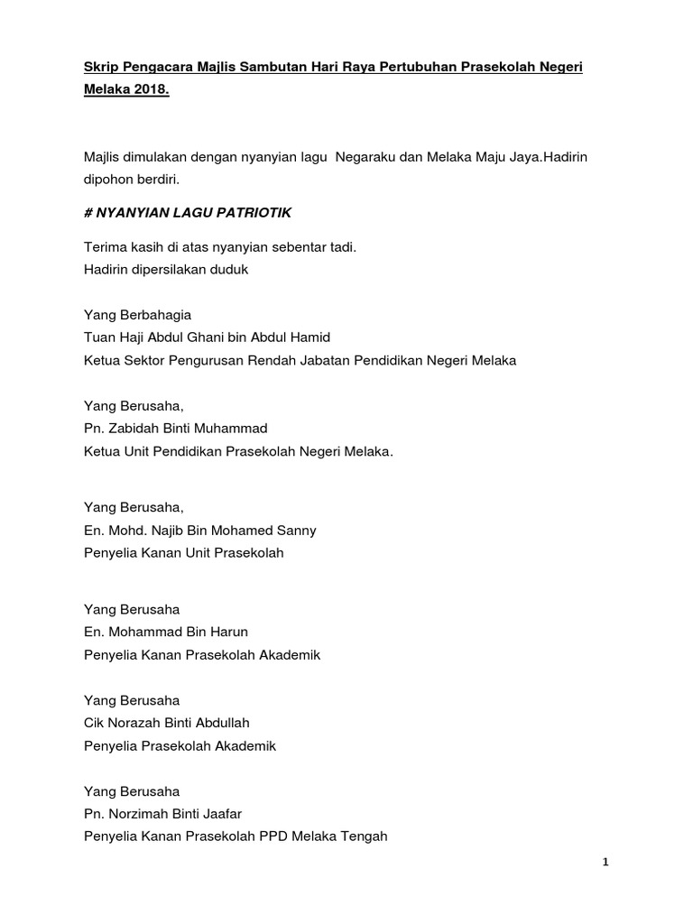 Teks Ramah Tamah Adilfitri Pra Negeri Melaka 2018