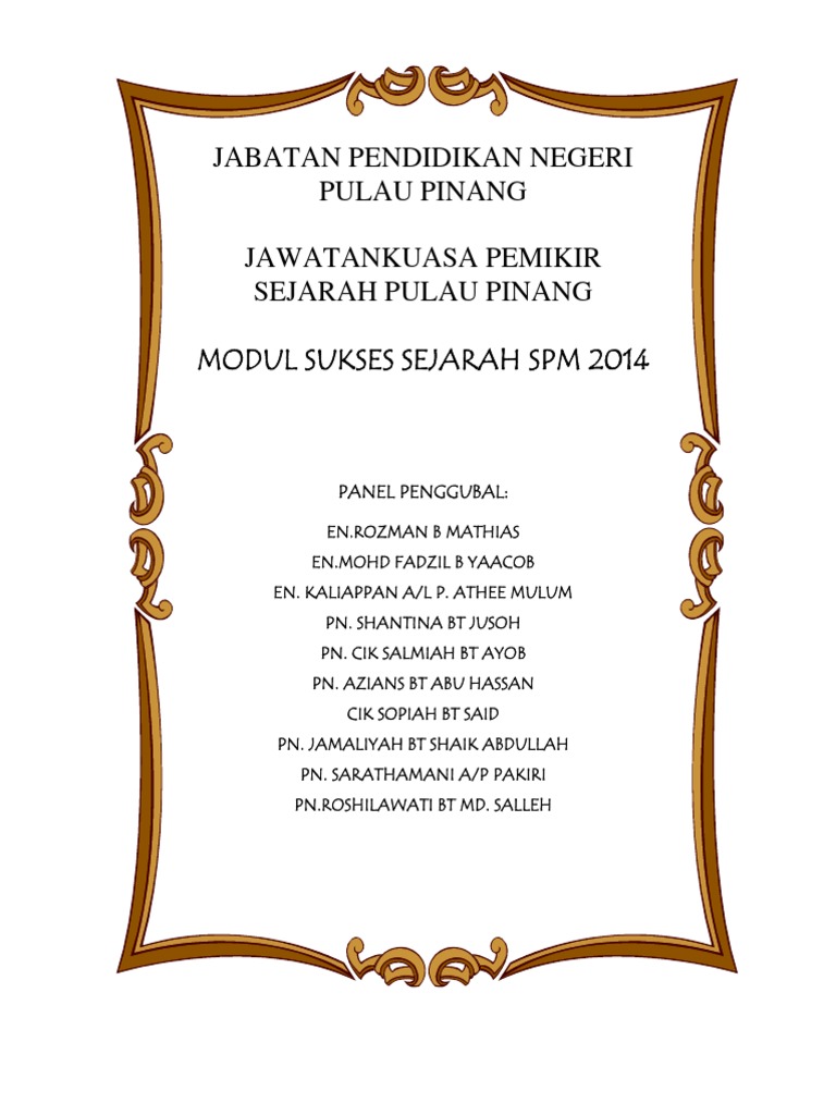 Model Sukses Sejarah Spm 2014 Jpn Pulau Pinang