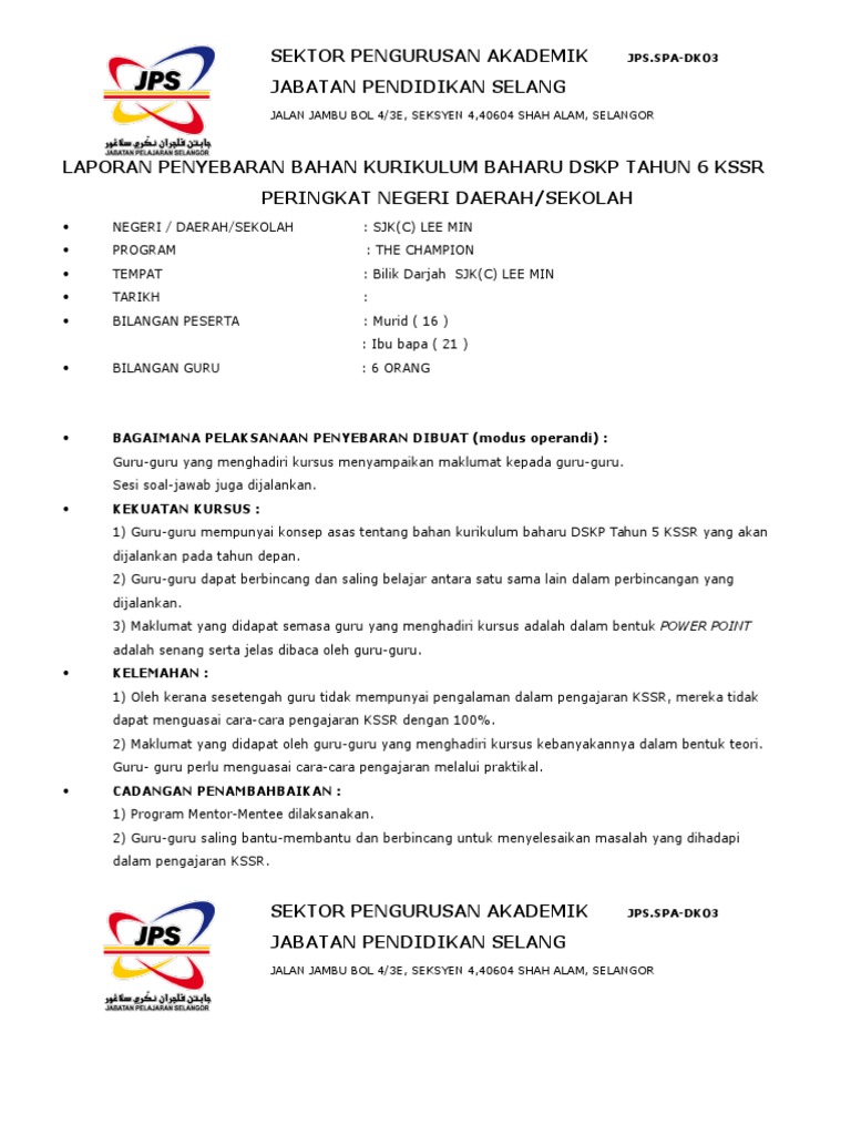 Jps Spa Dk03 Tapak Laporan Penyebaran Bahan Kurikulum