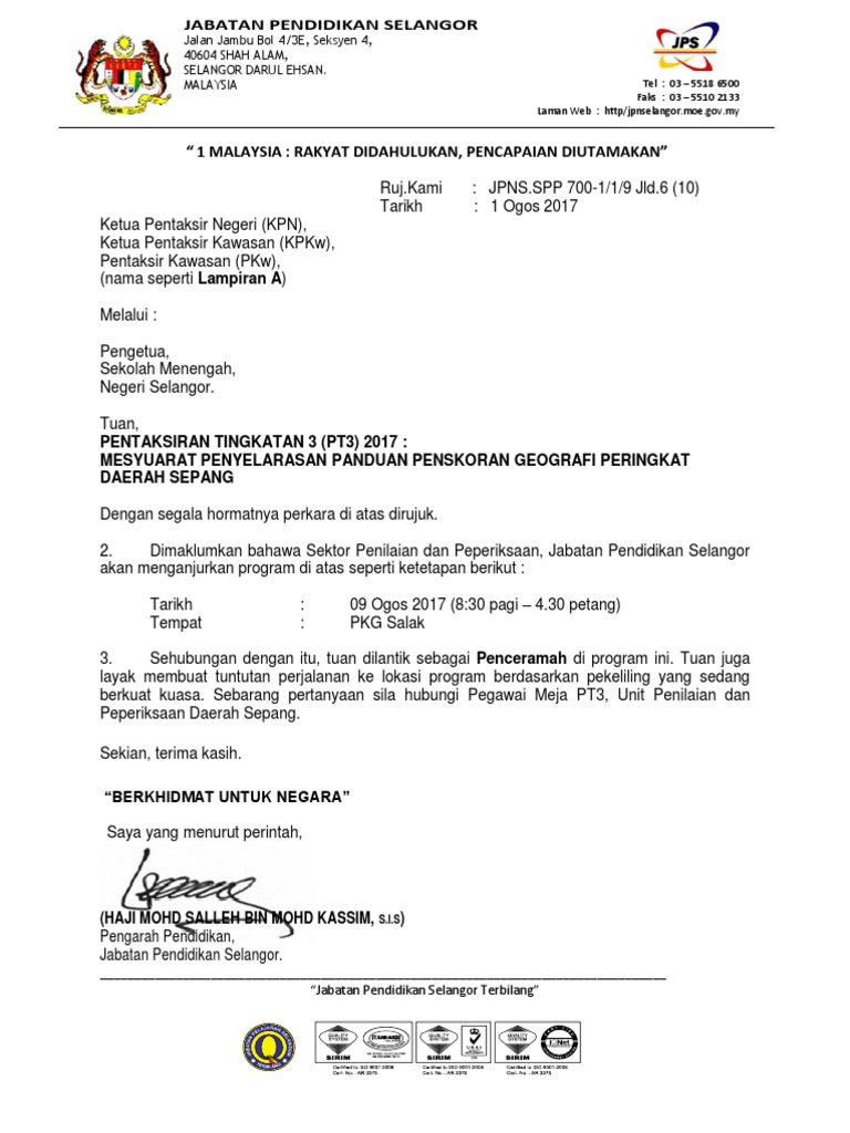Jabatan Pendidikan Negeri Selangor Jalan Jambu Bol 4 3e Seksyen 4 40604 Shah Alam Selangor Darul Ehsan