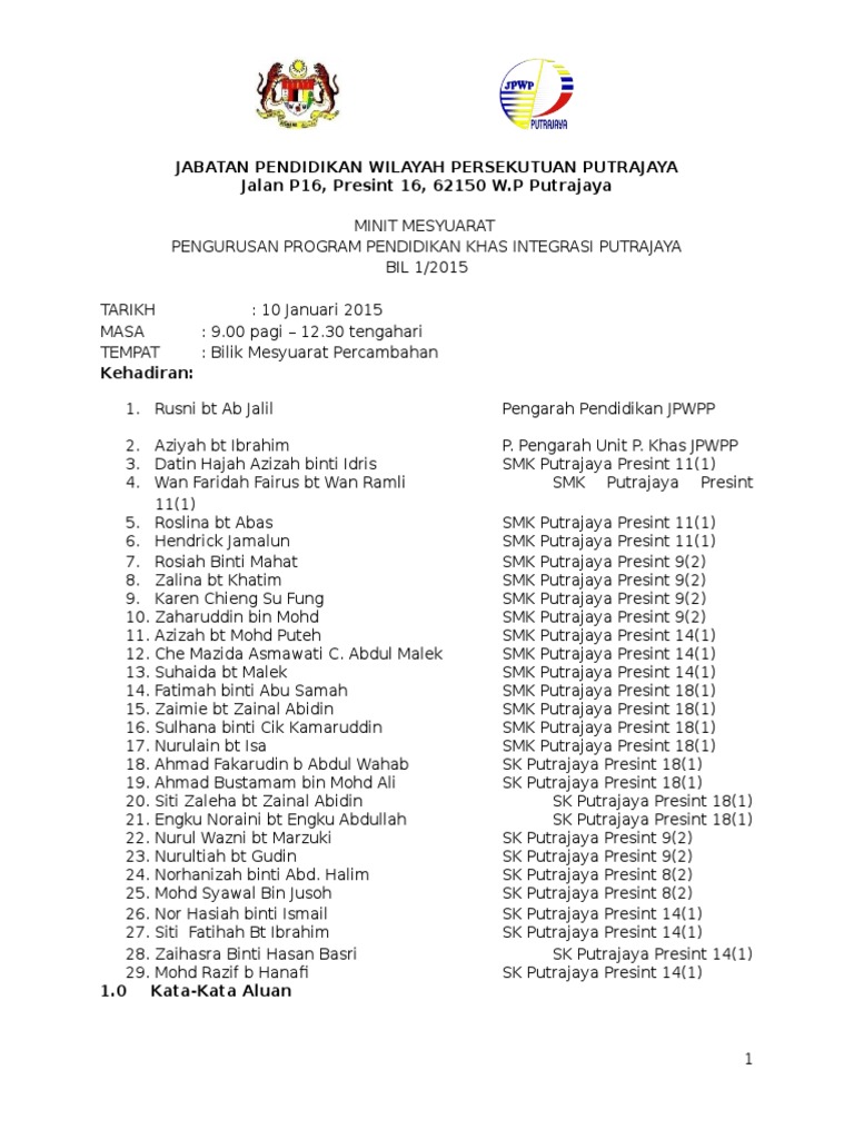 Mesyuarat Pengurusan Pendidikan Khas Bil 1 2015 Doc
