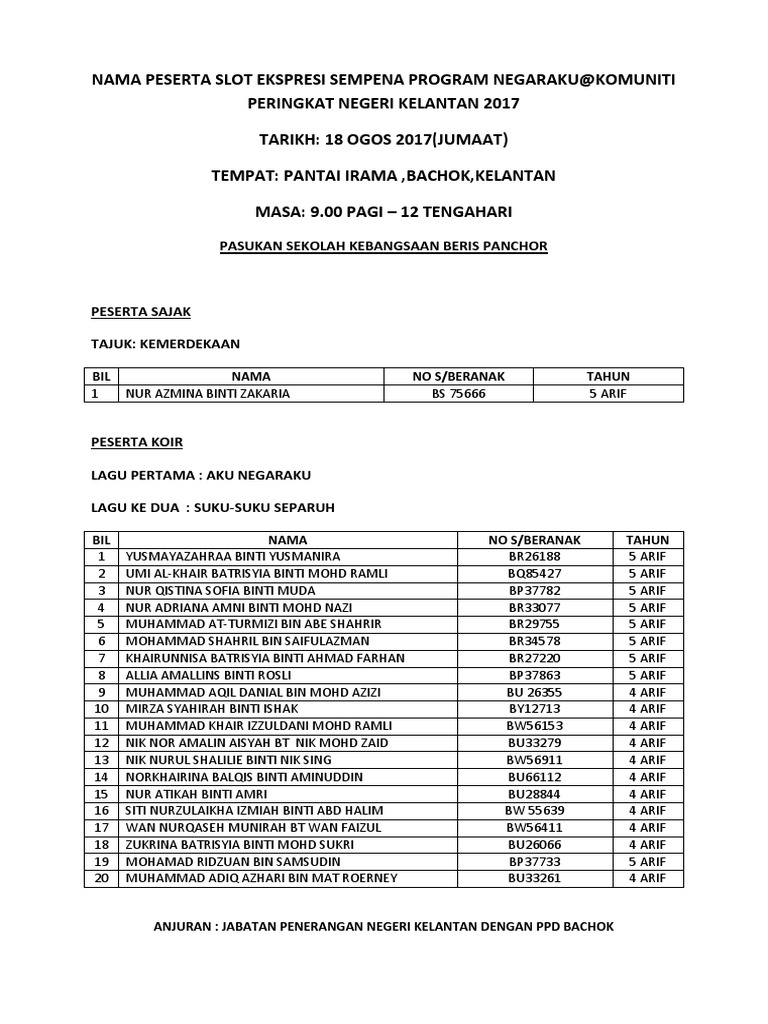 Nama Peserta Slot Ekspresi Sempena Program Negaraku Docx