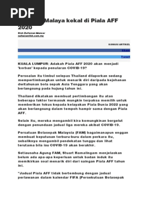 Harimau Malaya Kekal Di Piala Aff 2020 Oleh Zulfaizan Mansor