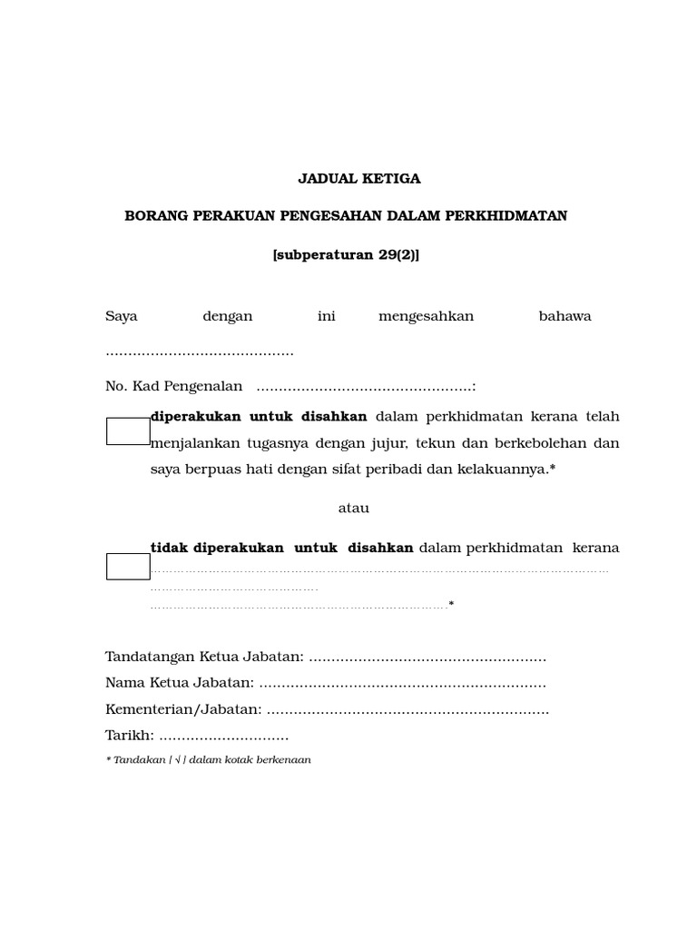 Jadual Ketiga I Peraturan 27 Borang Perakuan Pengesahan Dalam Perkhidmatan