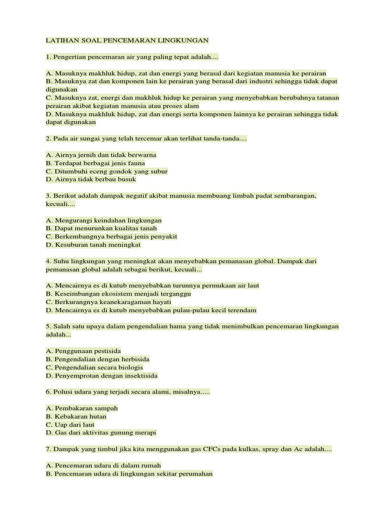 Latihan Soal Pencemaran Lingkungan