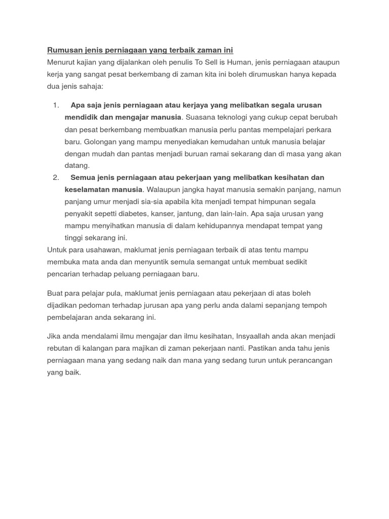 Rumusan Jenis Perniagaan
