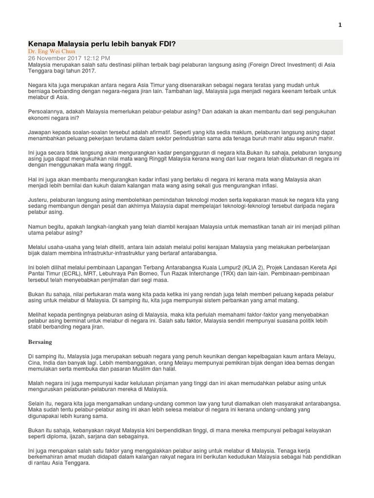 Kenapa Malaysia Perlu Lebih Banyak Fdi