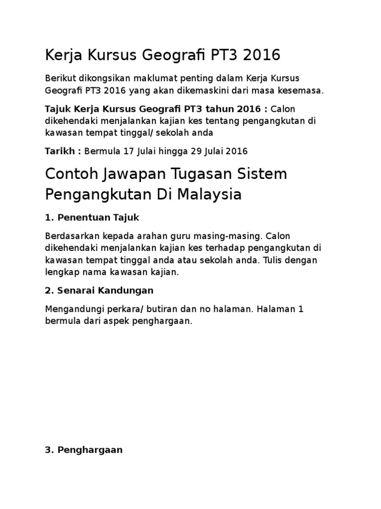 Contoh Jawapan Tugasan Geografi Pt3 2016 Pengangkutan