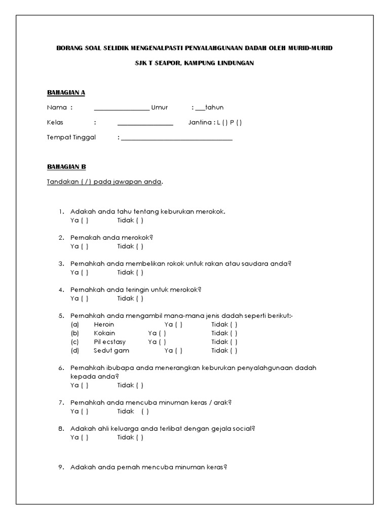 Borang Soal Selidik Dadah 1