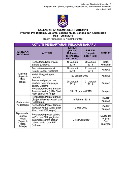 Kalendar Akademik Kumpulan B Mac Julai 2019