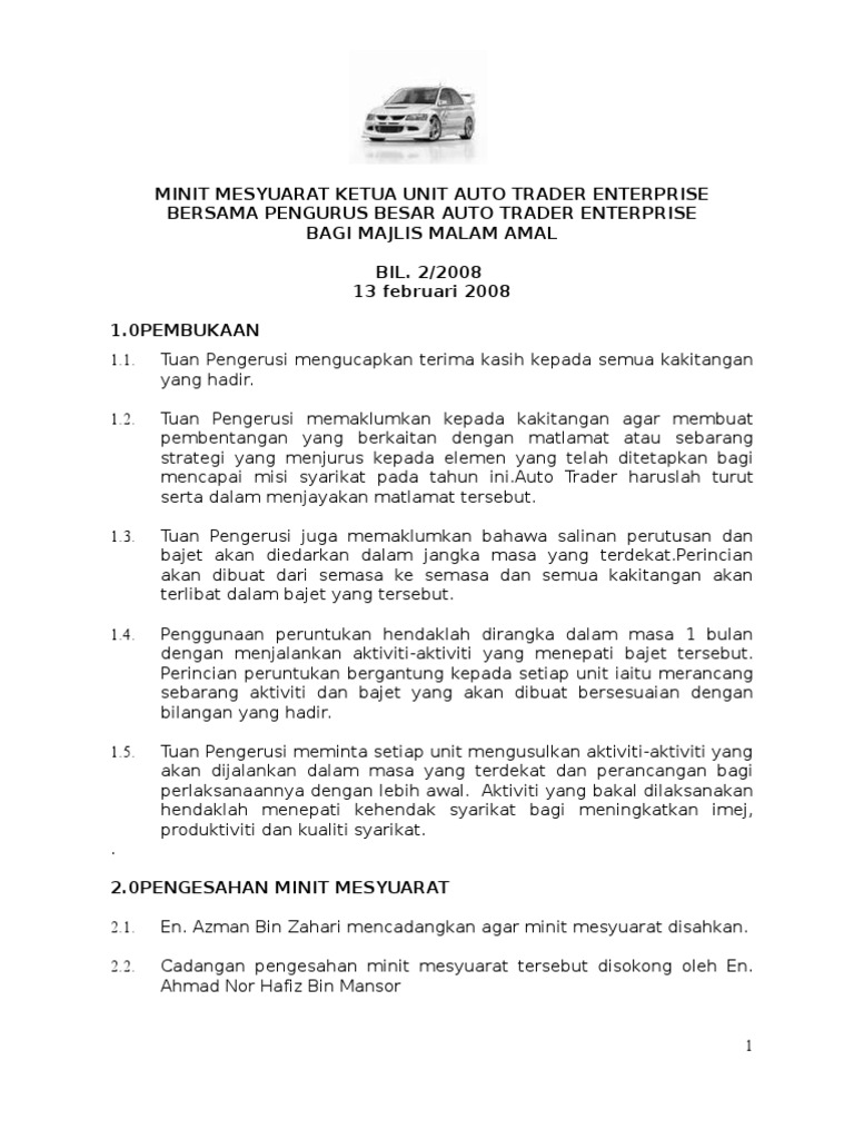 Doc Contoh Format Minit Mesyuarat Wawa Wawa Academia Edu