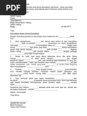 Surat Rasmi Aduan Tentang Kerosakan Kemudahan Awam Surat Rasmi Ra