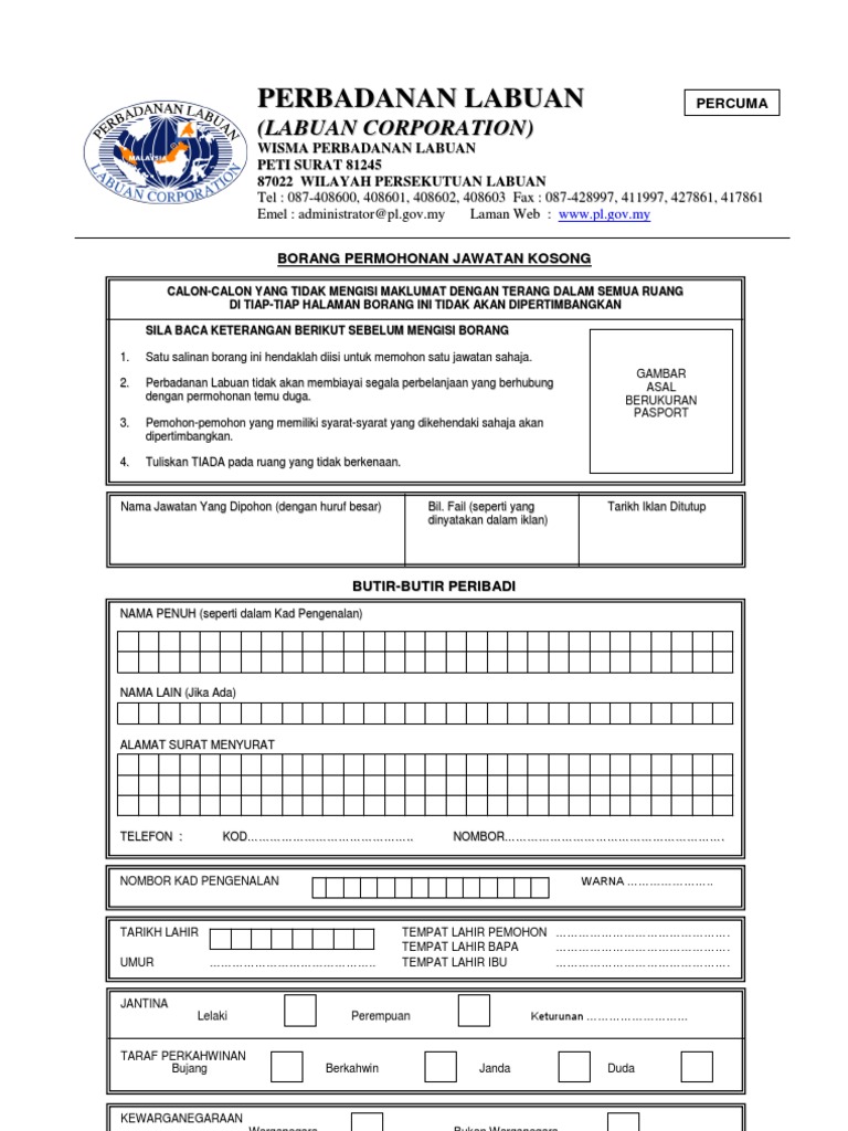 Borang Jawatan Kosong Mpku 2018 Updated 0 1 Pdf Borang Mpku 2018 Perhatian I Borang Ini Hendaklah Diisi Dengan Tulisan Tangan Sendiri Ii Maklumat Course Hero