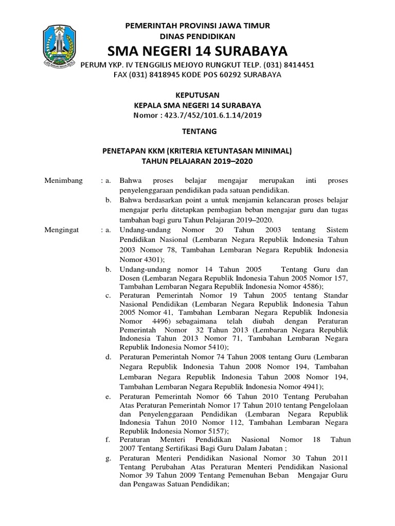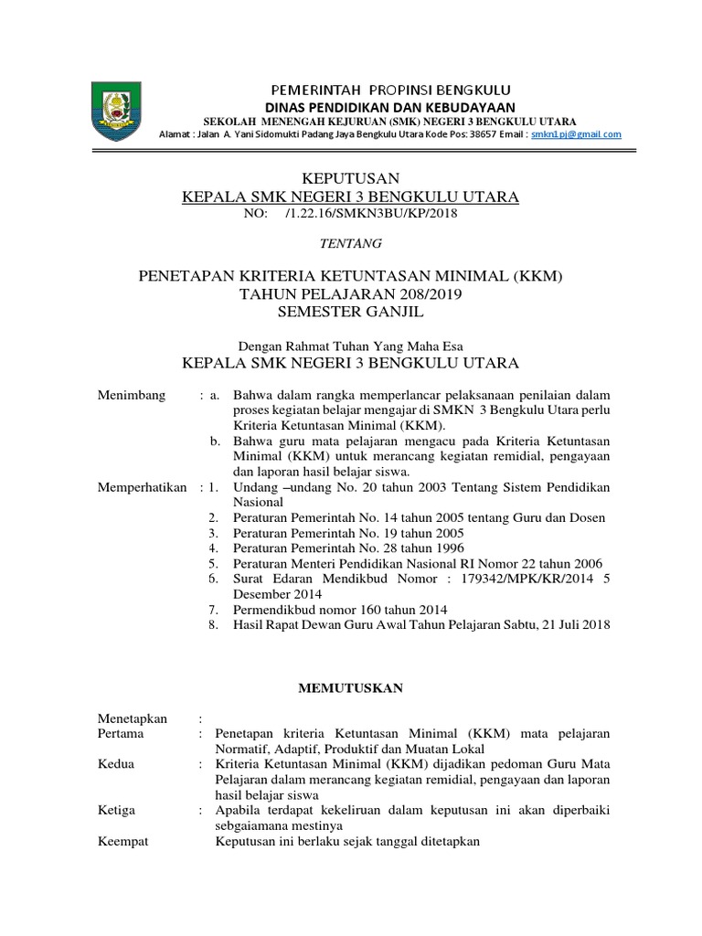 Sk Penetapan Kkm 2019 Untuk Sd Smp Sma Doc Info Pendidikan Terbaru