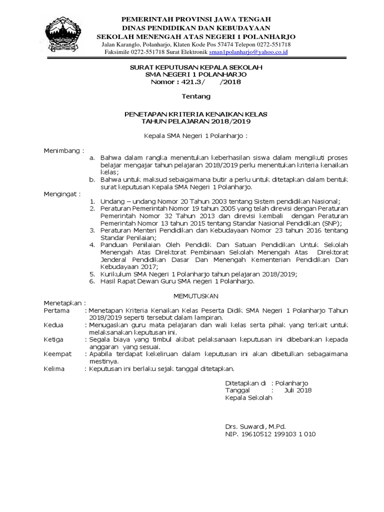 Surat Keputusan Sk Penetapan Kkm Satuan Pendidikan Mayfile