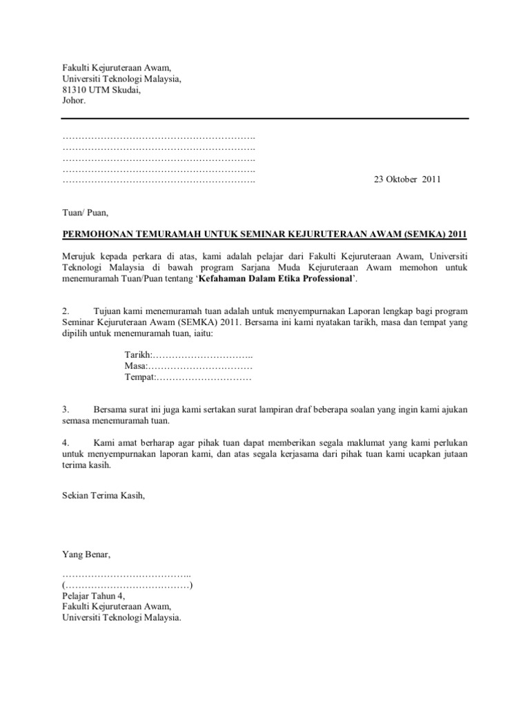 Surat Rasmi Permohonan Temu Janji Surat Rasmi L