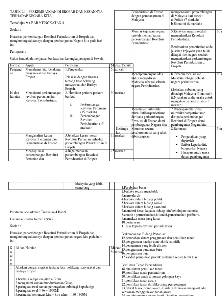 Contoh Soalan Dan Skema Jawapan Sejarah Kertas 3 Bab 9