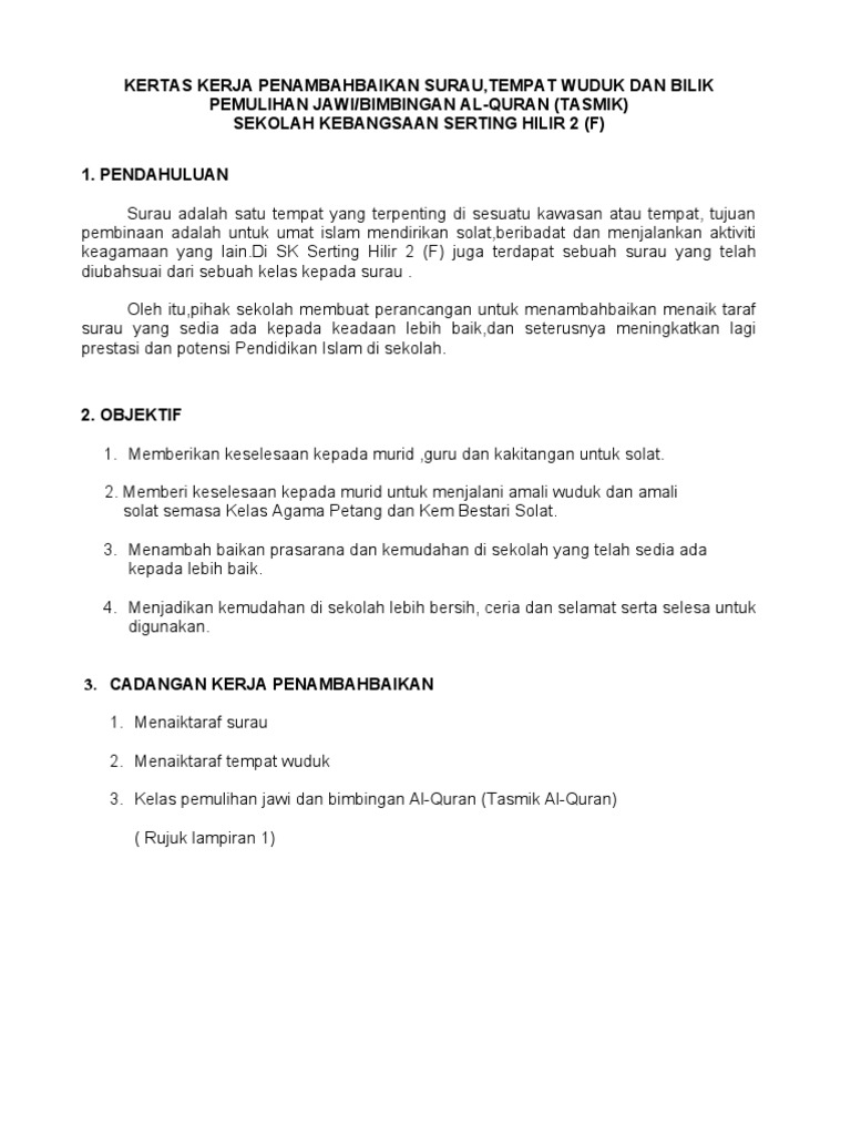 Kertas Kerja Permohonan Surau Ar Rahman Sk Sungai Ular Pages 1 6 Text Version Anyflip