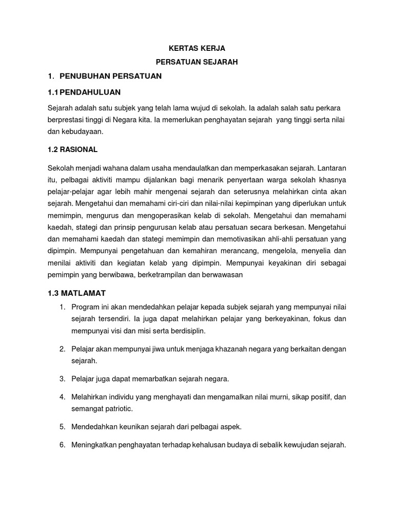Contoh Kertas Kerja Penubuhan Kelab Contoh Ko