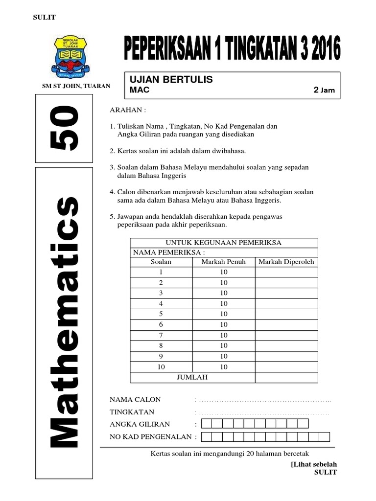 Kertas Soalan Matematik Pt3 2016 Soalan Bo