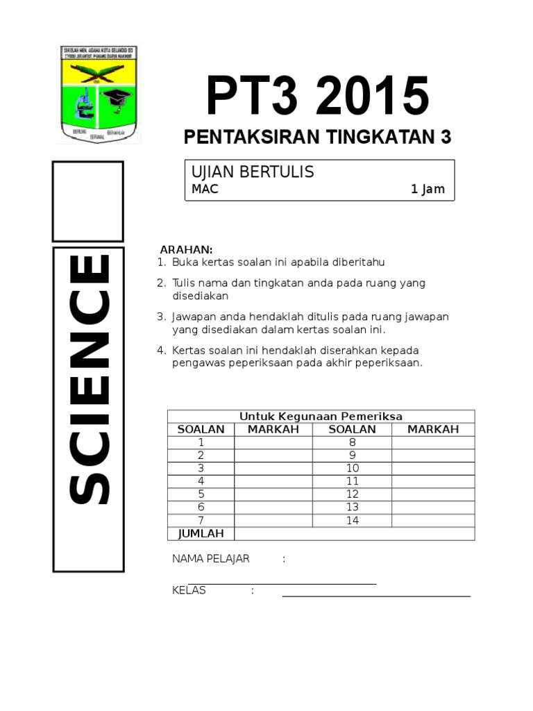 Pt3 2016 Pentaksiran Tingkatan 3 Arahan Buka Kertas Soalan Ini Apabila Diberitahu Ujian Bertulis Trial Pdf Document