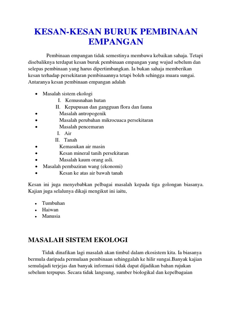 Impak Pembinaan Empangan Terhadap Alam Sekitar
