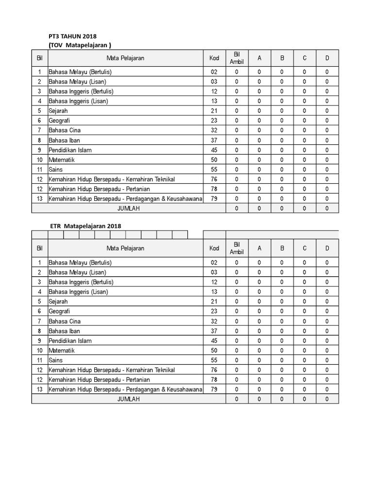 Senarai Mata Pelajaran Pt3 Pdf
