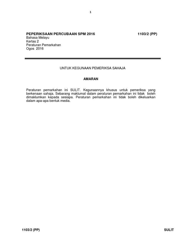 Skema Kertas 2 Peperiksaan Percubaan Bm Spm Daerah Kinta Selatan Negeri Perak