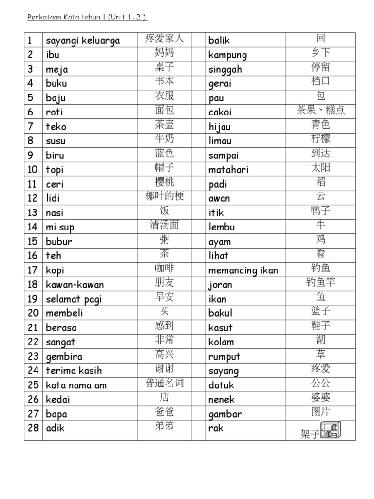Kosa Kata Bm Tahun 1 Sjkc Unit 1