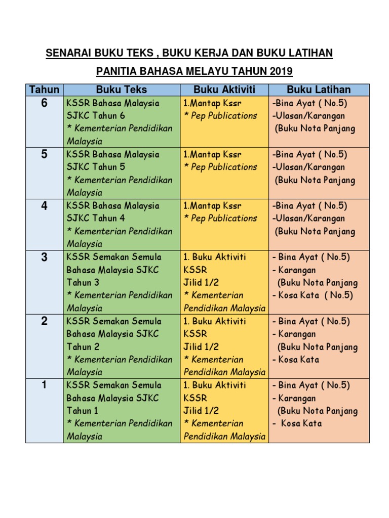 Kosa Kata Dalam Buku Teks Bahasa Melayu Kssr Tahun 1 2 3 Lazada