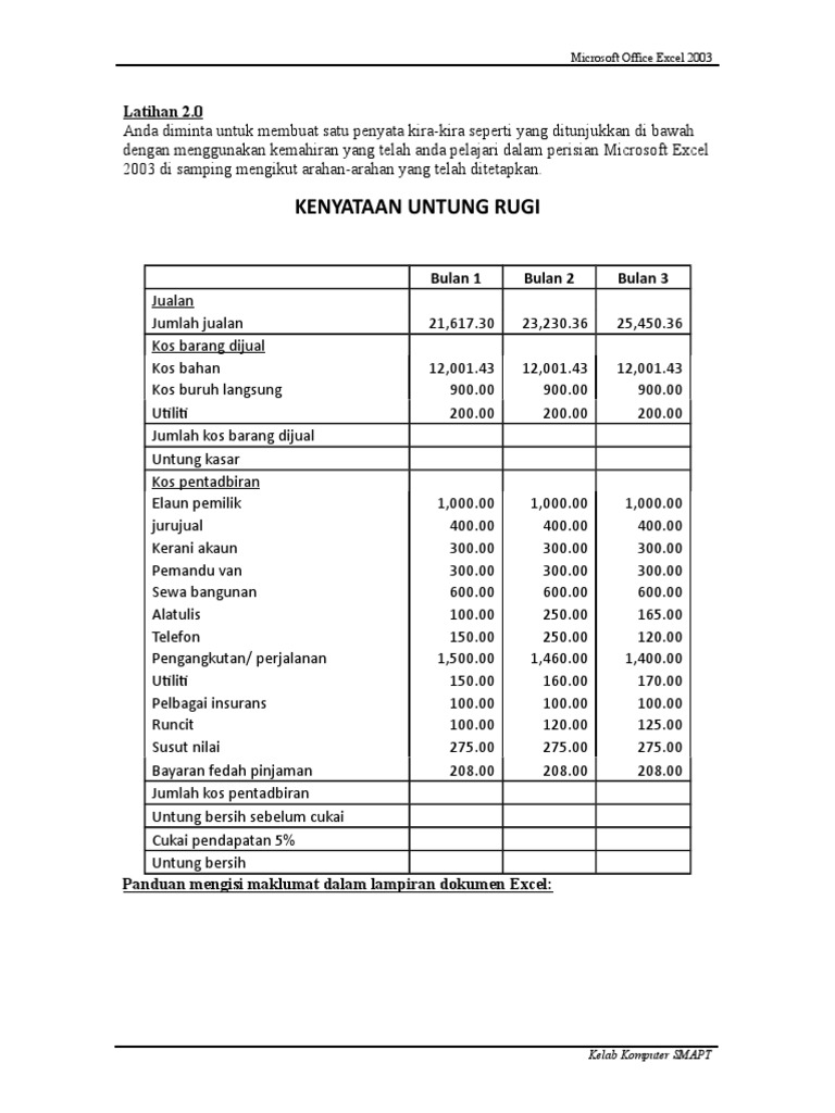 Xls Format Kunci Kira Kira Penyata Pendapatan Profesor Sam Academia Edu