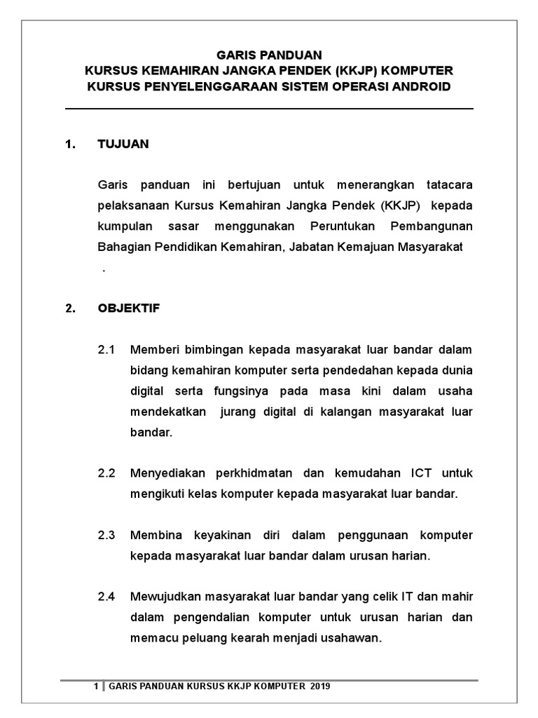 Garis Panduan Kursus Kemahiran Jangka Pendek Kkjp Komputer Kursus Penyelenggaraan Sistem Operasi Android