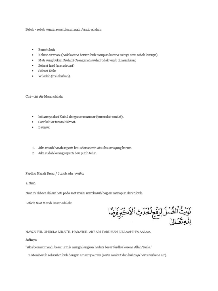 Doa Niat Mandi Nifas Dalam Bahasa Arab Docx