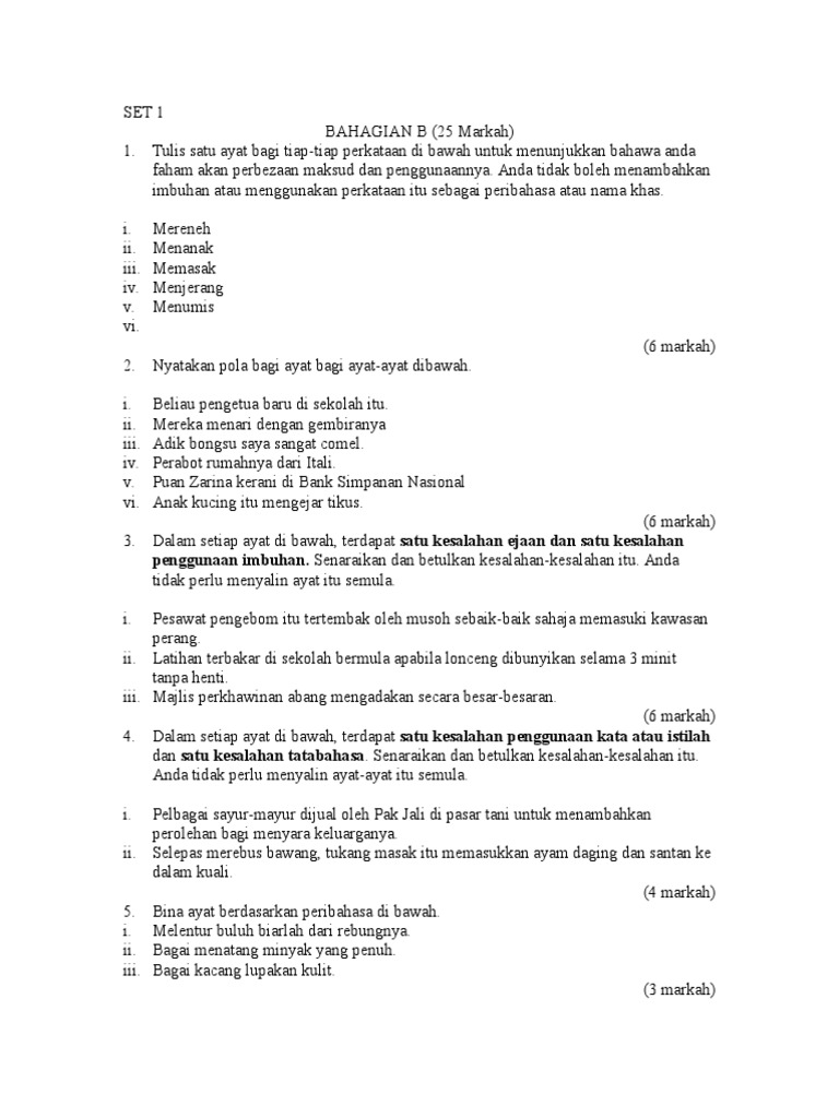 Contoh Soalan Kesalahan Tatabahasa Pt3 Soalan Bg