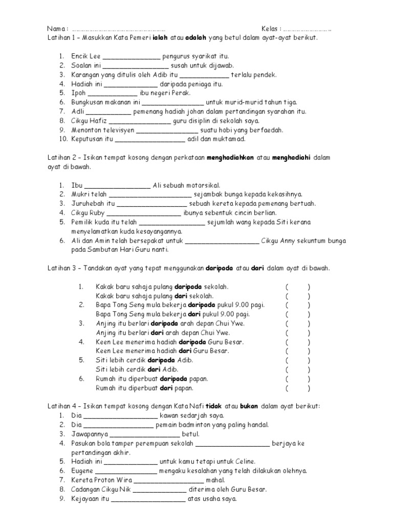 Latihan Tatabahasa Thn 5